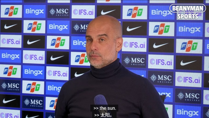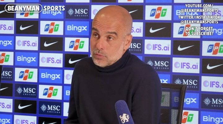 直播吧04月13日讯英超第32轮,曼城3-0击败切尔西。赛后,曼城主帅瓜迪奥拉出席了新闻发布会,回答了记者的提问,并谈到比赛中的调整、谢尔基、下轮联赛和阿森纳之间的“天王山之战”等等话题。