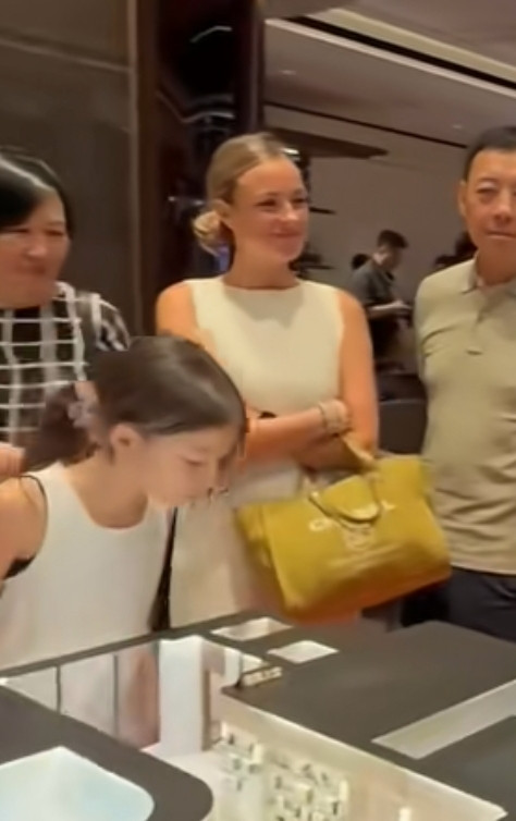 大儿子杨其龙是杨受成与前妻所生,杨其龙的老婆来自捷克,是个模特,两人婚后生了一儿一女,两个混血孩子都长得很漂亮。现场杨受成带大儿子看房时,一直围着混血孙子孙女,笑得合不拢嘴,看样子一家人也是好久没聚一起了,和孙子团聚的杨受成高兴得不行。