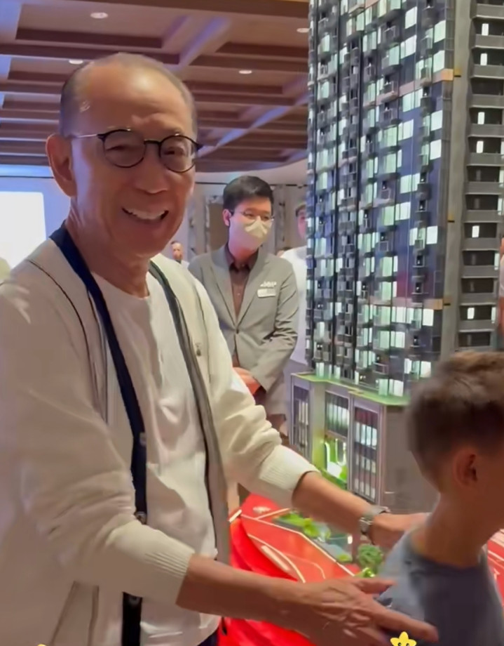 82岁高龄的知名企业家杨受成真是老当益壮,作为著名娱乐公司英皇老板的他,至今还没有退休,且身体状况还很硬朗。近日,杨受成和大儿子杨其龙一家现身某楼盘售楼处,一家六口齐聚看房,很是温馨。