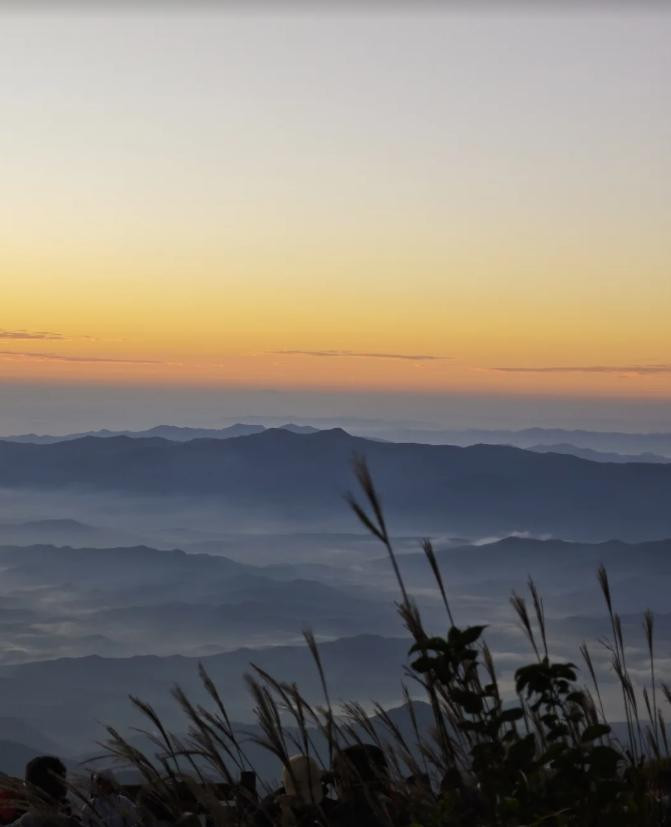偶尔有云雾飘过,眼前就什么都看不见了。就像是山偷偷在闭眼,懒懒地打个盹。等它再次睁开眼,一切都变得更清晰了些。人、草、云、风,都在时间里缓慢地交错,却从不打扰彼此。