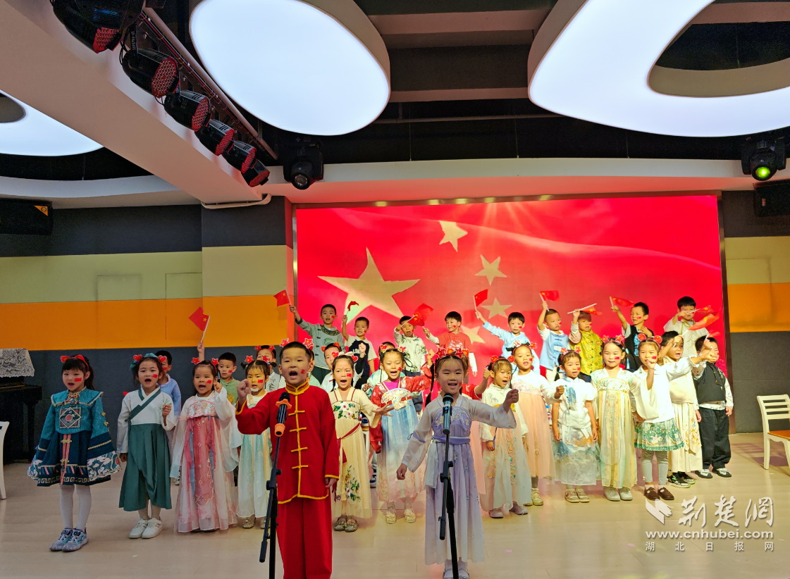 荆楚网(湖北日报网)讯(记者何鹏、许文秀 通讯员冯姗)丹桂飘香,童心向党。9月25日上午,江汉区童话幼儿园热闹非凡,以“一颗石榴心 浓浓爱国情”为主题的童谣古诗艺术节暨红歌会如期举行。