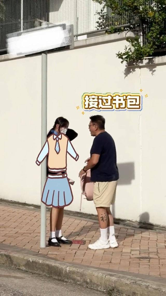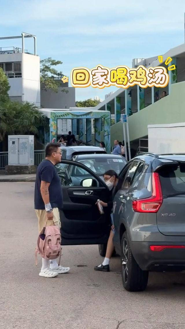 眼尖的魏骏杰一眼便认出Jessica,立马走向校门迎接女儿,更第一时间接过女儿的书包。Jessica也是首次露脸,虽然戴上口罩,但依然气质出众,有星二代的味道。